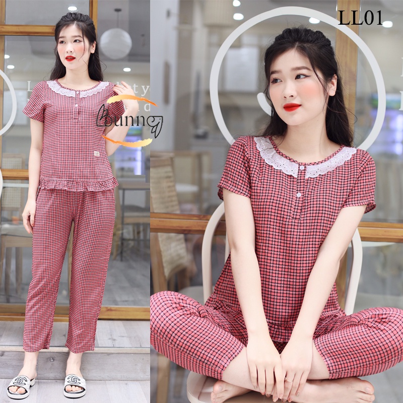 [Bunny] Đồ bộ nữ Kiểu dáng nhã nhặn, phong cách trẻ trung, hiện đại. Phía trước áo có ren, phía dưới có cúc cài. Chất liệu mềm mát hút mồ hôi tạo cảm giác thoải mái khi mặc Dựa vào bảng size hãy tìm cho mình kích cỡ vừa nhất Nhắn tin với Shop Mã sản phẩm phía trên bên phải các ảnh Để sở hữu cho mình bộ quần áo mặc nhà ưng ý nhất nhé