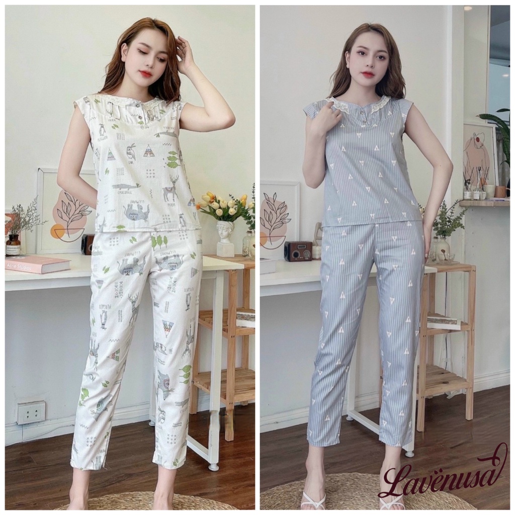 Bộ ngủ nữ chất vải thô Hàn lên form siêu chuẩn, chất mềm mát Bộ quần áo ngủ không bai xù khi giặt tay và giặt máy đồ bộ bên shop size cho các nàng dưới 60kg