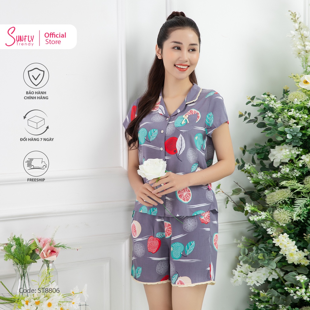 Giới thiệu Bộ đồ mặc nhà nữ pijamas lanh SUNFLY áo cộc, quần sooc ST8806