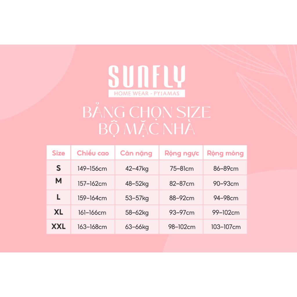 ✔️ VỀ THƯƠNG HIỆU THỜI TRANG SUNFLY: Sunfly được ra đời với sứ mệnh mang lại vẻ đẹp tươi trẻ,tự tin và năng động cho các chị em phụ nữ VN trong những giờ phút bên gia đình và người thân. Sau hơn 17 năm xây dựng và phát phát triển,Sunfly vẫn luôn tự hào là 1 thương hiệu thời trang mặc nhà đứng đầu tại thị trường Việt Nam. 📌 Follow Sunfly ngay, để được nhận ngay các Mã Giảm Giá 🎟️ chỉ dành cho Follower. 📌 Bấm lưu ❤️ sản phẩm để bạn xem/mua khi cần. 📌 Hãy chia sẻ sản phẩm của SUNFLY cho bạn bè người thân khi thích sản phẩm. 📌 Comment và đánh giá 5 sao ⭐⭐⭐⭐⭐ cho SUNFLY Nếu bạn hài lòng về chúng tôi! Đặc biệt NẾU BẠN CÓ ĐIỀU GÌ CHƯA HÀI LÒNG, thay vì đánh giá 1 hay 2 sao, hãy nói cho SUNFLY biết ngay nhé, SUNFLY hỗ trợ bạn luôn nha (inbox cho Sunfly qua tin nhắn nhé, Sunfly sẽ trả lời bạn nhanh nhất!)