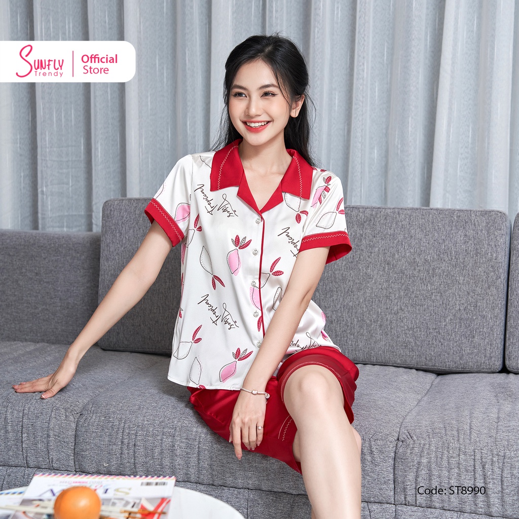 Giới thiệu Bộ Đồ Mặc Nhà Nữ Pyjamas Lụa SUNFLY Áo Cộc Quần Ngố ST8990