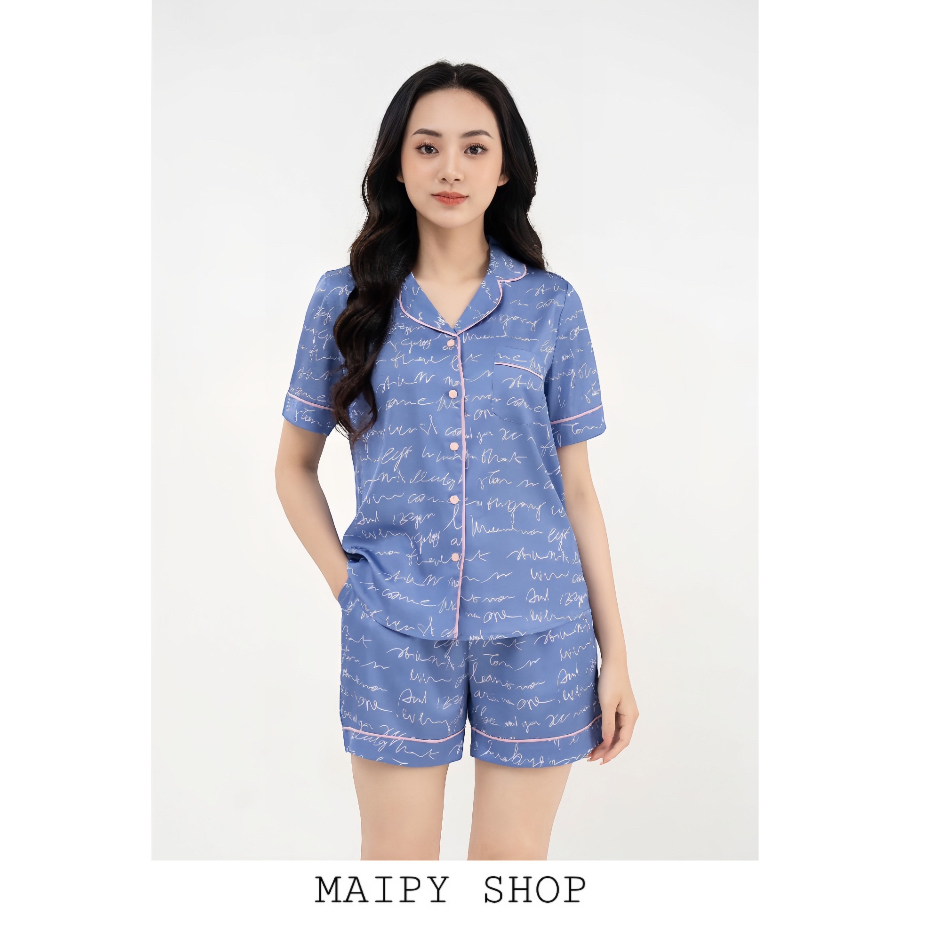 Giới thiệu Đồ Bộ Mặc Nhà, Pijama Lụa, Bộ Ngủ Nữ Mùa Hè Áo Cộc Tay Quần Đùi Chất Liệu Lụa Giấy, Hoạ Tiết Chữ - PJN008