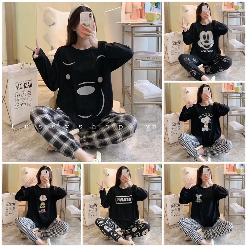 Giới thiệu Bộ Mặc Nhà Thu Đông Hoạ Tiết Gấu Kẻ Caro Đồ Bộ Nữ Dễ Thương Pyjama Ngủ 2022