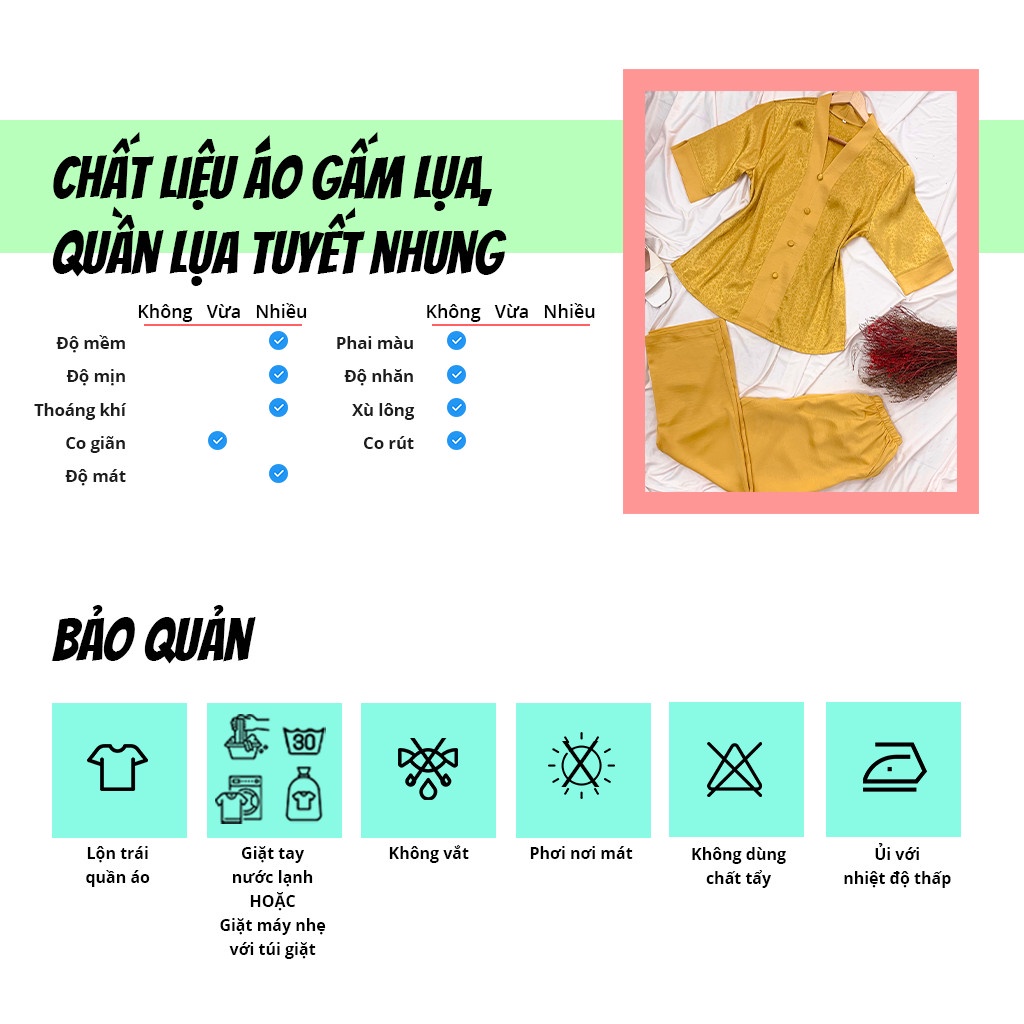 SBORG - Nổi bật, tinh tế và sang trọng. Chúng mình có bán bộ mặc nhà trung niên bạn cần! - Sản phẩm thuận tiện mặc nhà và ra ngoài - Chất liệu lụa gấm/tuyết nhung cao cấp đảm bảo mềm, mịn, siêu mát. - Họa tiết hiện đại, thanh lịch, sang trọng. - Tuyệt đối không phai màu, xù lông, co rút. - Đường may chắc chắn, form đẹp, tôn dáng. - Luôn hỗ trợ đổi size/màu/mẫu. ----------------------------------- * Thông tin sản phẩm Bộ mặc nhà trung niên SBORG bộ pijama lụa gấm tuyết nhung cao cấp. - Tên sản phẩm:Bộ mặc nhà trung niên SBORG bộ pijama lụa gấm tuyết nhung cao cấp hoạ tiết sang trọng phối quần dài bigsize 50-85kg - Chất liệu: gấm/tuyết nhung - Màu sắc: Nhiều màu như hình. - Size: L - 3XL (50-85kg) Khách hàng vui lòng xem bảng size chi tiết ở phần hình ảnh sản phẩm hoặc chat với SBORG để được tư vấn size phù hợp. - Thương hiệu: SBORG (Việt Nam). Xuất xứ: Việt Nam ----------------------------------- * Hướng dẫn bảo quản sản phẩm Bộ mặc nhà trung niên SBORG bộ pijama lụa gấm tuyết nhung cao cấp: - Giặt tay bằng nước lạnh + Lộn trái sản phẩm khi giặt + Không vắt và phơi lên. - Hoặc Giặt máy + Lộn trái sản phẩm và bỏ vào túi giặt + Giũ mạnh trước khi phơi lên. ----------------------------------- * Sborg cam kết về sản phẩm Bộ mặc nhà trung niên SBORG bộ pijama lụa gấm tuyết nhung cao cấp: - Sản phẩm: Bộ mặc nhà trung niên SBORG bộ pijama lụa gấm tuyết nhung cao cấp 100% giống mô tả. Hình sản phẩm là ảnh thật do shop tự chụp và giữ bản quyền hình ảnh. - SBORG cam kết tư vấn nhiệt tình, cẩn thận và kiểm tra kỹ sản phẩm trước khi gửi cho Khách hàng. Đảm bảo chất lượng sản phẩm và dịch vụ tốt nhất. - Hàng có sẵn, gửi hàng ngay khi nhận được đơn. Hàng được giao từ 1-5 ngày kể từ ngày đặt hàng tùy theo đơn vị vận chuyển. - Giao hàng trên toàn quốc theo hình thức COD hoặc qua ví Airpay. - Hoàn tiền nếu sản phẩm không giống với mô tả. Hỗ trợ đổi trả nhanh chóng theo quy định của Shopee ----------------------------------- * Quy định đổi trả sản phẩm Bộ mặc nhà trung niên SBORG bộ pijama lụa gấm tuyết nhung cao cấp: 1. Điều kiện áp dụng (trong vòng 07 ngày kể từ khi nhận sản phẩm): + Hàng hoá vẫn còn mới, chưa qua sử dụng + Hàng hóa hư hỏng do vận chuyển hoặc do nhà sản xuất. + Hàng không đúng size, kiểu dáng, không đủ số lượng như quý khách đặt hàng + Hàng không vừa size khách hàng. 2. Trường hợp không đủ điều kiện áp dụng chính sách: + Quá 07 ngày kể từ khi Quý khách nhận hàng + Gửi lại hàng không đúng mẫu mã, không phải sản phẩm của Sborg + Không thích, không hợp, đặt nhầm mẫu mã, nhầm màu.