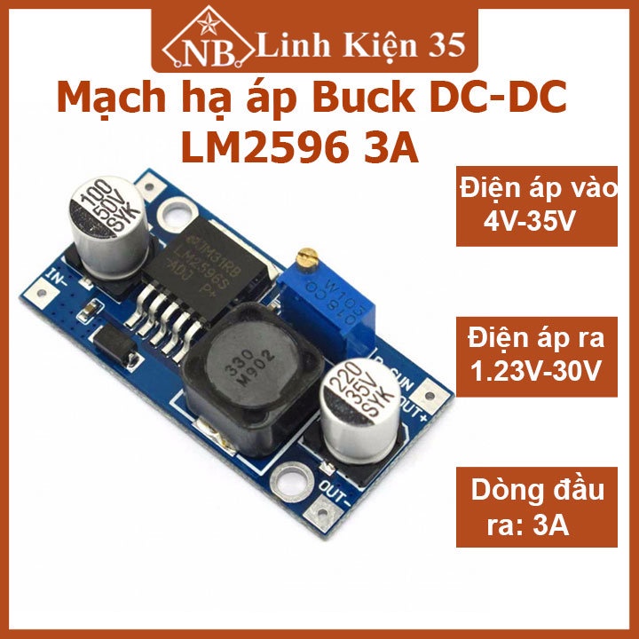 Giới thiệu Mạch hạ áp Buck DC-DC LM2596 3A ( Vào 4-35VDC - Ra 1-30VDC ) siêu nhỏ gọn tiện lợi