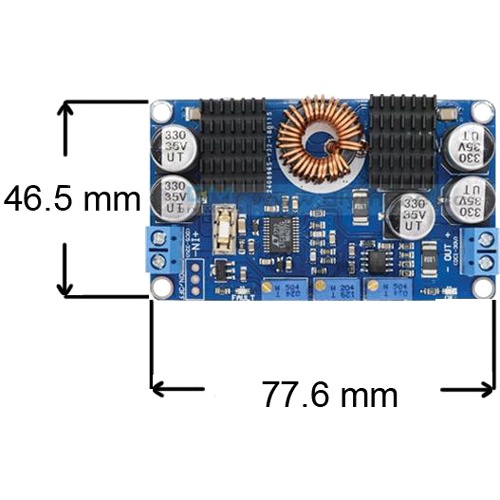 Đèn hiển thị: Hiển thị lỗi Hiển thị ngõ vào Tích năng tích hợp biến trở để cài đặt Constant Current, Under Voltage lockdown, Output Voltage Bảo vệ ngắn mạch Khối lượng: 45 grams Kích thước: 77.6 x 46.5 x 15mm