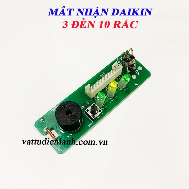 Mạch mắt nhận đèn báo cho điều hòa DAIKIN nóng nhỏ Trị số 7.5k và 15k rắc 10 chân 3 đèn Đặc tri lỗi C9 Lỗi ko lên tua chạy sai nhiệt độ Khắc phục lỗi ẩm mạch Còi to đèn sáng mắt remote nhạy
