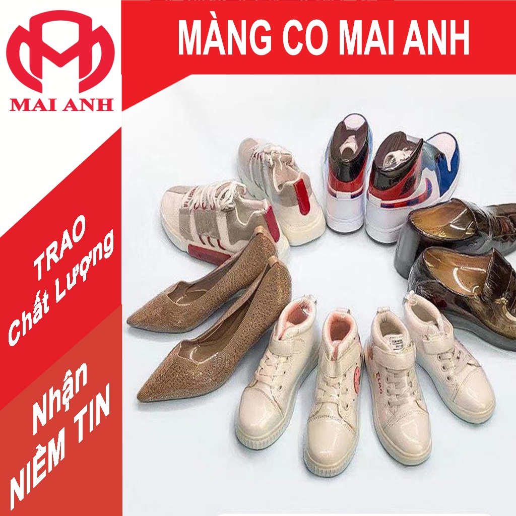 Màng co giày nam Tác dụng: Chống Ẩm Chống Bụi Có Màng Bọc Bảo Vệ Giày. Chất liệu: màng co PVC Độ dày: Một mặt 0.03mm Nhiệt độ co lại: 70 ~ 100 ℃ Kích thước: size giày trẻ em, size giày nữ, size giày nam