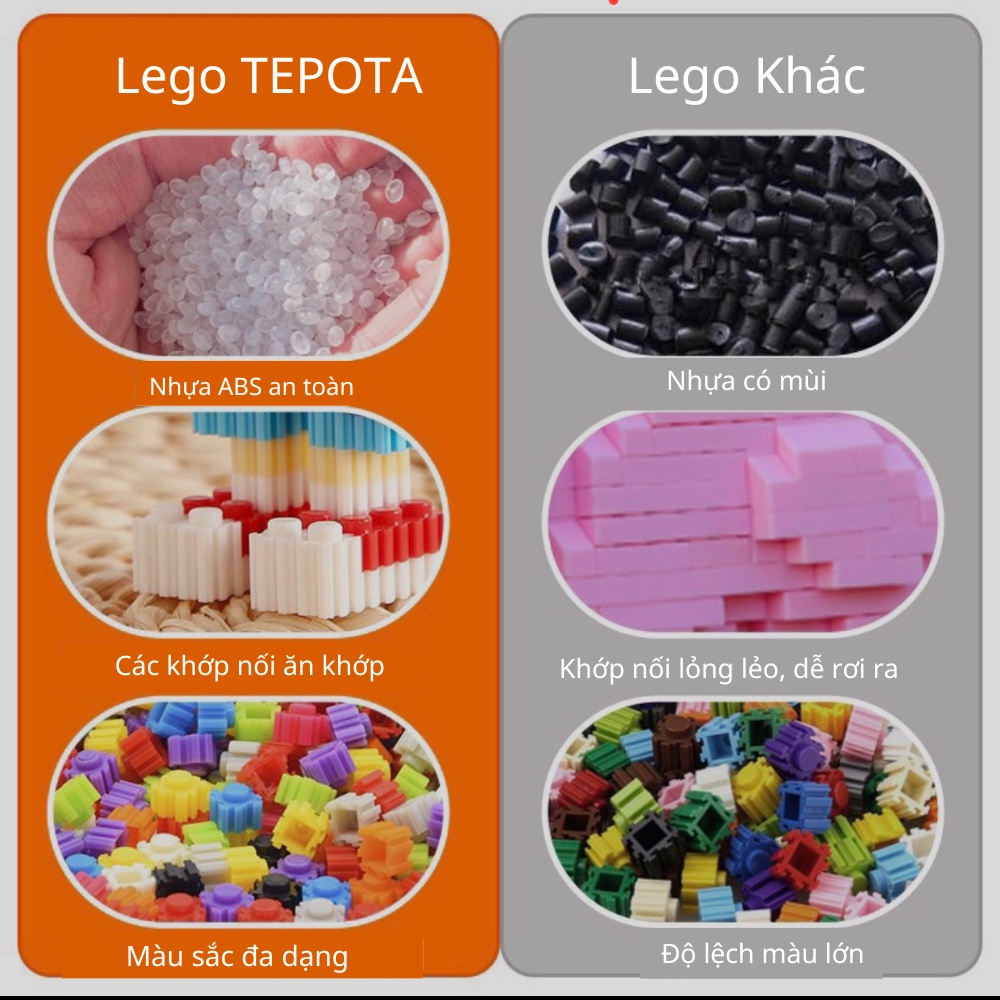 Trong khi chơi những hạt lắp ráp lego xếp hình của TEPOTA, bé có thể tạo ra các tác phẩm theo ý muốn của mình, đồng thời rèn luyện trí óc. Phương pháp này tạo ra sự thích thú mạnh mẽ, đồng thời cũng rèn luyện khả năng thực hành, khả năng phối hợp, khả năng hợp tác của trẻ với các chuyển động nhỏ và màu sắc.