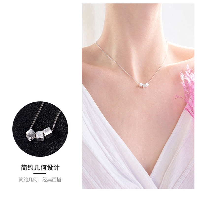 Giới thiệu MANYUE Dây chuyền mạ bạc mặt hình khối lập phương thời trang nữ phong cách đơn giản