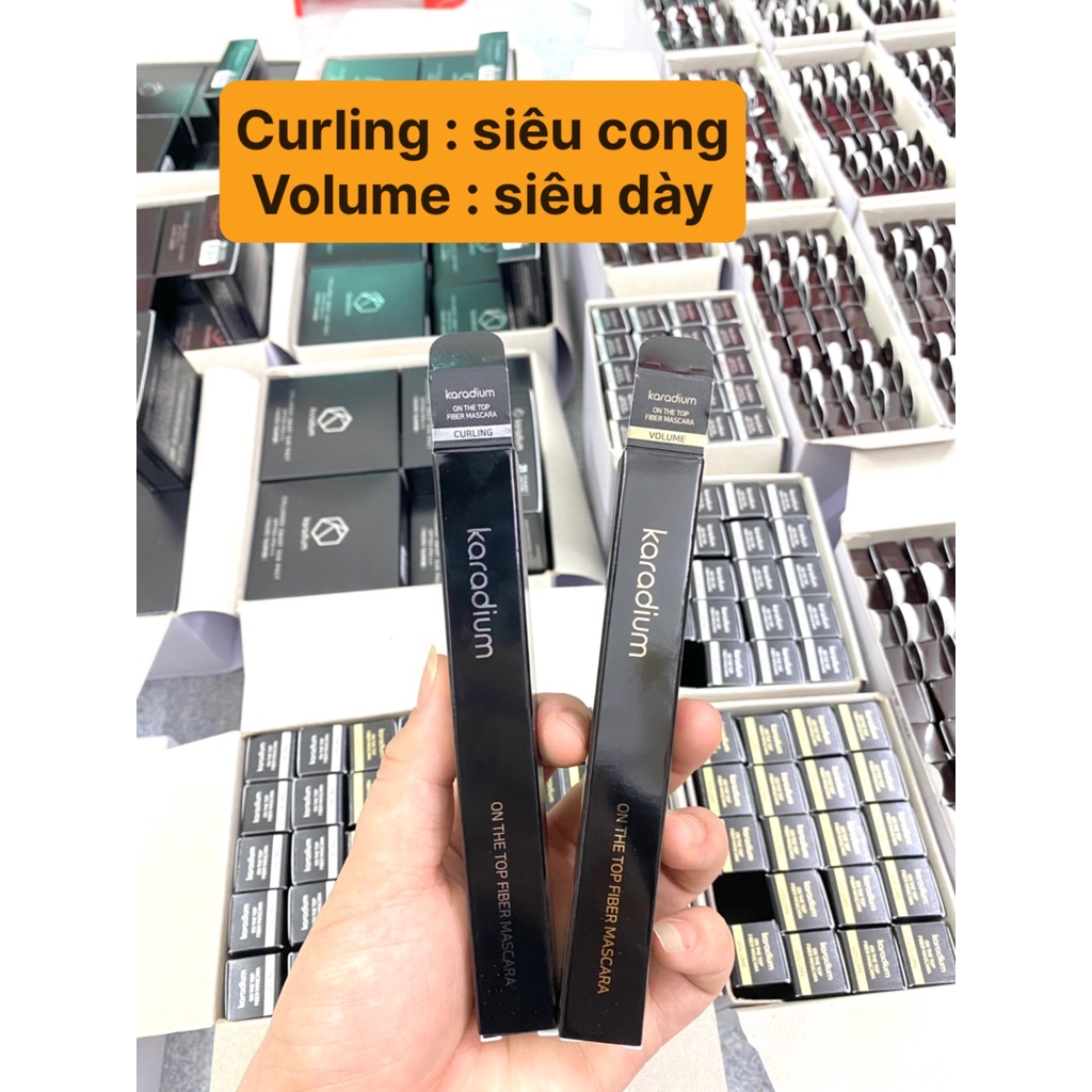 3. Phân loại: Chuốt mi Karadium On The Top Fiber Mascara có 2 loại: - Volume Type: Làm dày mi - Curling Type: Làm cong mi