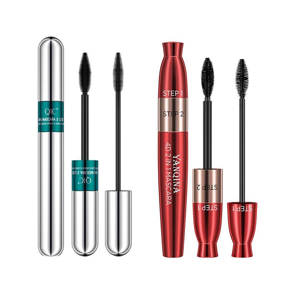Gói bao gồm- Mascara hai đầu 1 CÁI 4d Silk Fiber Eye Black Double Head Mascara lông mi Bàn chải lông mi lỏng Mở rộng lông mi Không dễ dàng Thuốc nhuộm mờ 5 lần Dụng cụ trang điểm không thấm nước Kéo dài lọn tóc