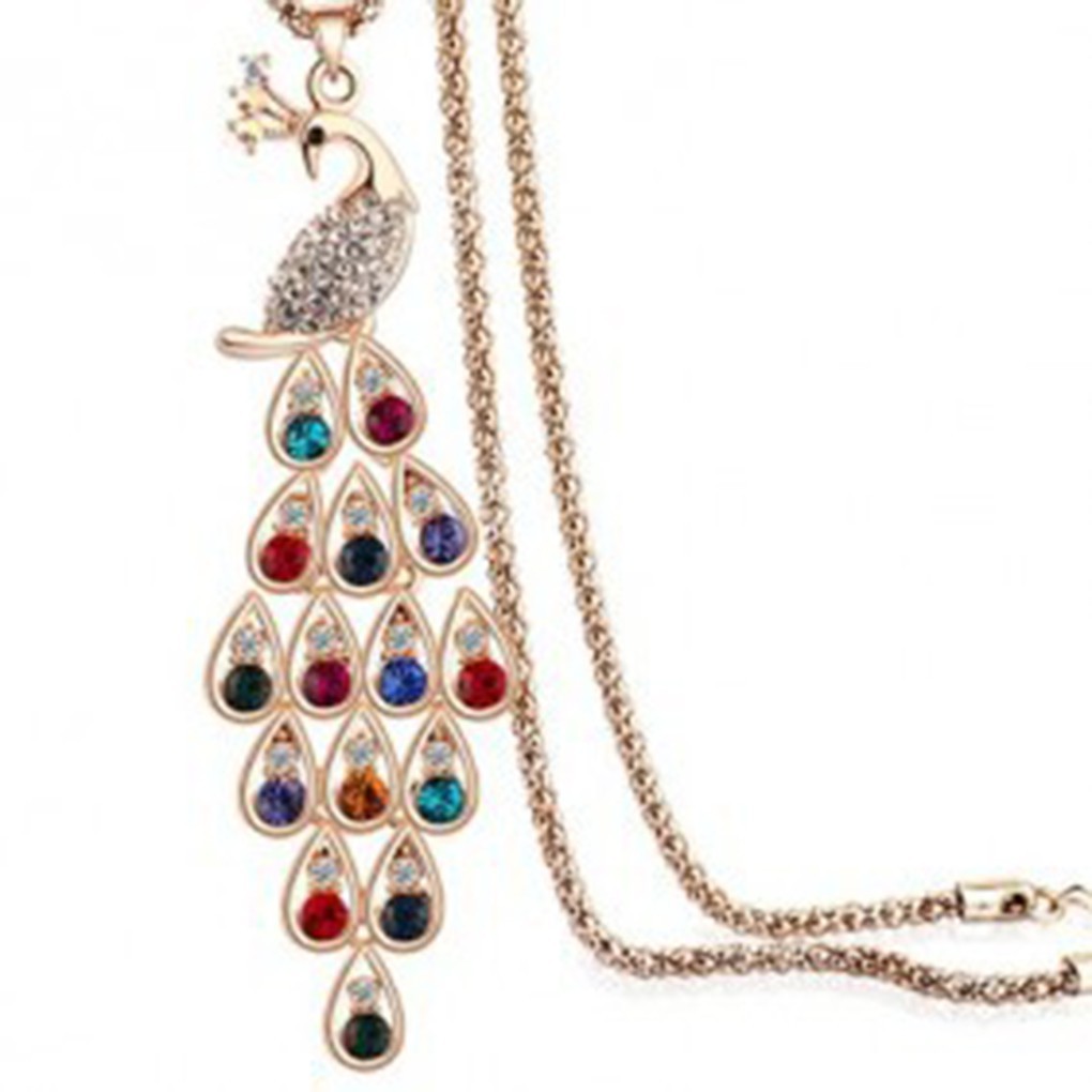 Giới thiệu Mặt dây chuyền hợp kim hình con công đính đá nhiều màu độc đáo