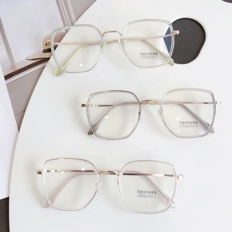 Giới thiệu Mắt Kính Gọng Kim Loại Trong Suốt Oversize Chống Ánh Sáng Xanh Thời Trang Phong Cách Retro