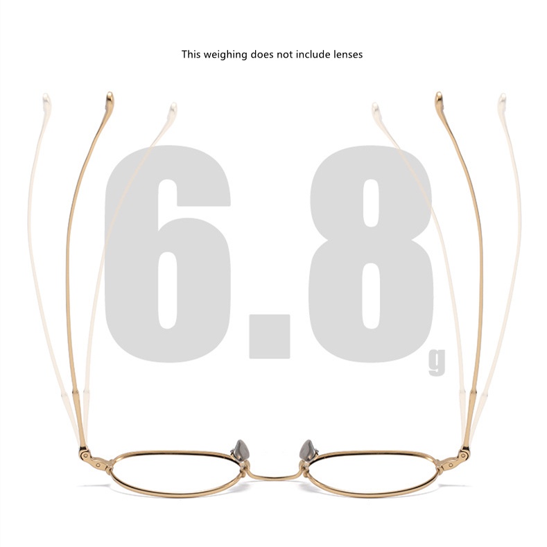 Khung titan nguyên chất, nhẹ như 7 gram, không hao mòn, vàng áp dụng cho lớp mạ vàng 18K, làm nổi bật quý phái, hình bầu dục retro, cổ điển linh hoạt, kiểu dáng mãi mãi. Màu đồng được mạ điện cũ, mặc vào có hương vị khác. Khung bạc ít khóa và bình thường, với khả năng sử dụng gấp đôi. Mua kính có gọng da và vải gương.
