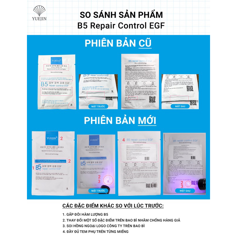 Giới thiệu Mặt nạ cấp ẩm phục hồi da Yuejin B5 Repair Control EGF / Yuejin Liposome PP Mask 25ml