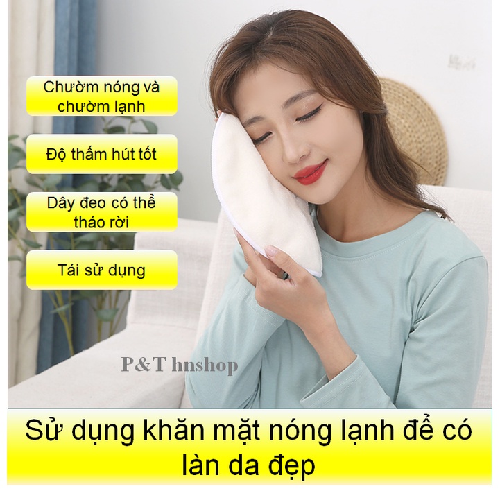 HƯỚNG DẪN SỬ DỤNG : Cách 1: Nhúng khăn mặt vào nước nóng vừa phải và vắt ráo nước đắp lên mặt từ 5-10p để dãn nở lỗ chân lông sau đó dùng các sản phẩm dưỡng da sẽ hiệu quả hơn Cách 2: Ngâm khăn mặt với nước rồi sử dụng với tủ hấp. Chườm lạnh: thấm khô khăn mặt, vắt khô, cho vào túi bảo quản tươi và cho vào ngăn đá tủ lạnh. Ẩn trong khoảng 5 phút. Các mẹo nhỏ: Trong quá trình đợi làm nóng/lạnh khăn nên rửa mặt, thoa đều kem dưỡng da và dùng khăn mặt đắp lên mặt để thúc đẩy quá trình hấp thụ các sản phẩm dưỡng da và giúp da căng bóng, sáng mịn, đàn hồi. Tần suất chườm nóng là 3-4 lần một tuần, mỗi lần 2-5 phút và nhiệt độ nước khoảng 40-50 độ.