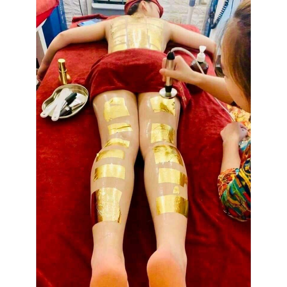 - Lá vàng kích thước 4x4cm, Massage đến đâu vàng tan đết đến đấy ạ Hướng dẫn sử dụng MẶT NẠ D.ÁT VÀ.NG 24.K NGU.YÊN CH.ẤT. 1. LƯU Ý: - Lá vàng rất mỏng, rất dễ bị rúm, quá trình thao tác xin hết sức nhẹ nhàng! 2. CÔNG DỤNG: Mặt nạ d.át vàng 24.k nguy.ên ch.ất giúp trắng da, mềm mịn da, mờ thâm nám, se khít lỗ chân lông, xóa bỏ nếp nhăn, vết chân chim và trẻ hóa da. 3. CÁCH DÙNG Bước 1: Làm sạch mặt, tẩy tế bào da chết, xông hơi cho lỗ chân lông dãn nở. Bước 2: Thoa một lượng vừa đủ serum, kem Massage hoặc tế bào gốc lên mặt. Bước 3: Dán từ 3-5 miếng mặt nạ dát vàng lên mặt, tập trung vào vùng da xấu (có thể dán nhiều hơn tuỳ chủ spa cân đối thu tiền của khách). Giữ nguyên mặt nạ trên mặt trong khoảng 10-20 phút. Bước 4: Thoa một lượng kem Massage vừa đủ ra tay rồi Massage thật kỹ da mặt. Và.ng 24.k sẽ tan và thẩm thấu hết vào trong da, để lại làn da trắng sáng, mịn màng. Bước 5: Rửa sạch vàng và kem Massage trên mặt. Đắp mặt nạ và.ng 24.k Bước 6: Rửa lại mặt thật sạch