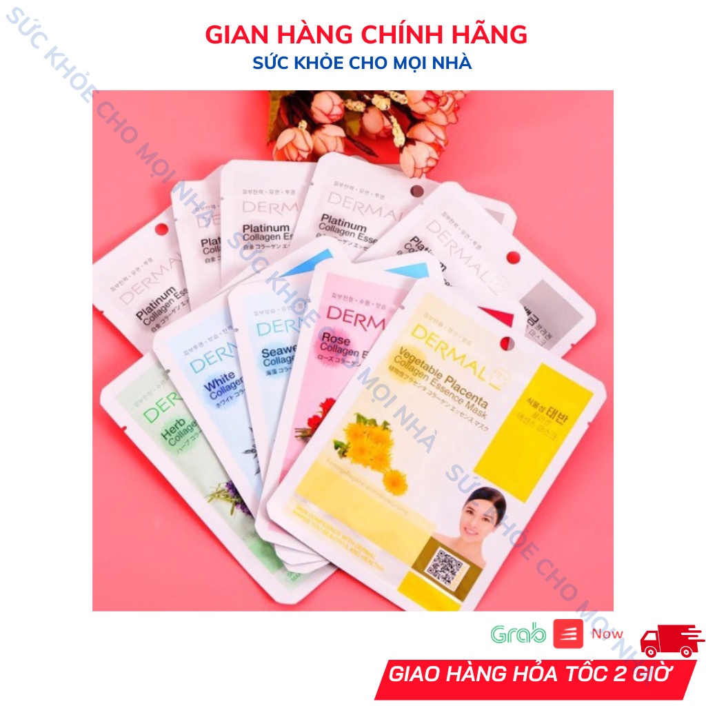Mặt nạ dưỡng da Dermal collagen tinh chất chăm sóc da mặt.Korea suckhoechomoinha Đặc điểm: Đây là những loại mặt nạ rất dễ dùng và có tác dụng rõ rệt. Mặt nạ cung cấp trực tiếp cho da mặt các dưỡng chất cần thiết. Sau khi đắp mặt, bạn có thể ra ngoài mà không cần phải rửa mặt lại.