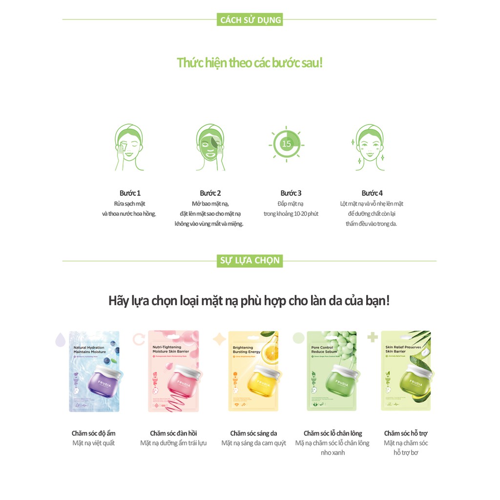 Giới thiệu Mặt Nạ Dưỡng Frudia Green Grape Pore Control Mask Se Khít Lỗ Chân Lông Chiết Xuất Nho Xanh 20ml
