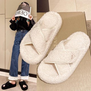 Dép Quai Ngang Phối Lông Xù Thời Trang Dành Cho Nữ