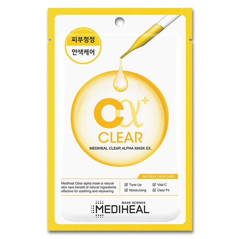 2. Mặt nạ Mediheal Clear Alpha Clear Alpha Mask EX giúp làm sạch, sáng mịn da 23ml Thành phần: Clear Alpha Complex (Vitamin C + Portulaca Oleracea Extract) Vitamin C(Sodium Ascorbyl Phosphate)