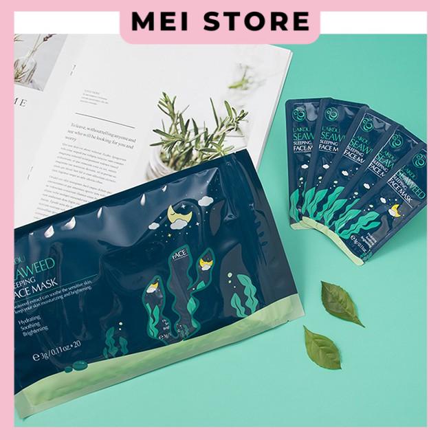 Mặt Nạ Ngủ Tảo Biển Laikou với chiết xuất 100% từ tảo biển tươi và các Vitamin tổng hợp có tác dụng lớn trong việc làm đẹp, ngăn ngừa mụn, các vết nám, tàn nhang, đồi mồi, đồng thời làm chậm lão hóa, giúp da cải thiện tình trạng mỏng yếu, phục hồi hư tổn, nhạy cảm, làm trắng da từ bên trong, giúp da trắng hồng rạng rỡ.