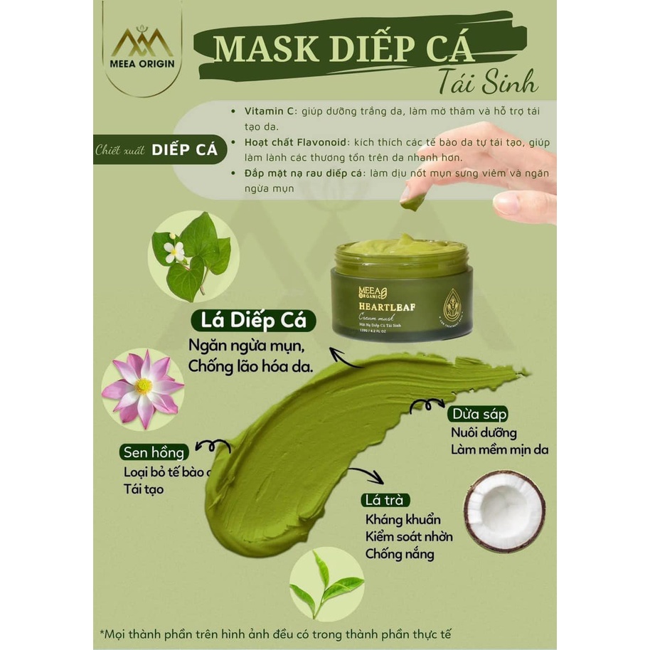 Giới thiệu Mặt nạ trắng da diếp cá tái sinh Meea Organic chính hãng, ngừa mụn, dưỡng trắng da, mờ thâm nám, chống lão hoá da 120g