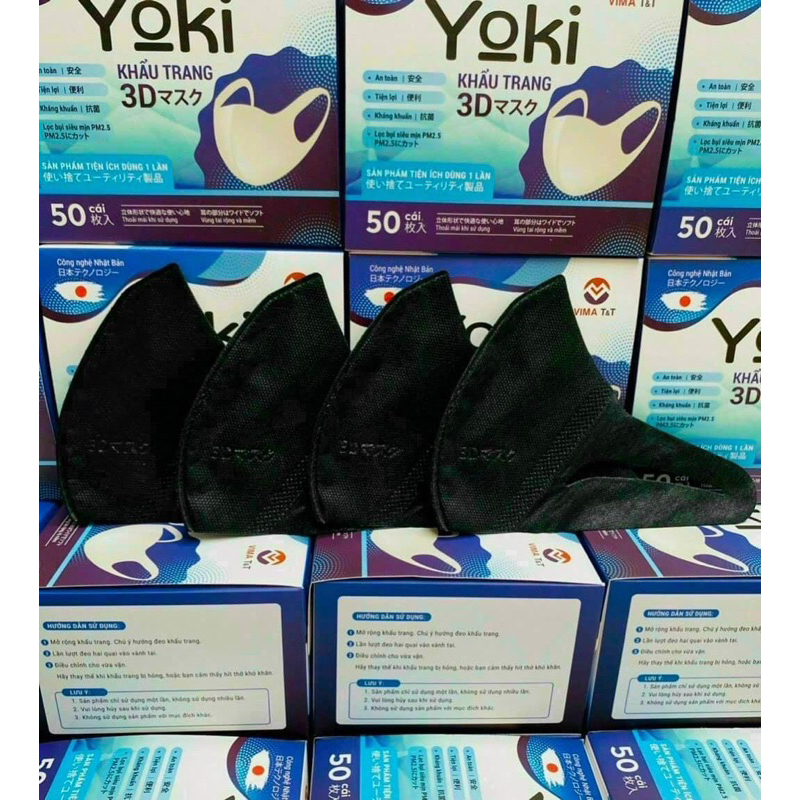 Sức Khỏe > Vật tư y tế > Bao tay và khẩu trang y tế > [Màu Đen] Khẩu trang 3D Yoki Mask Hộp 50 cái kháng khuẩn công nghệ nhật bản hàng chính hãng công ty