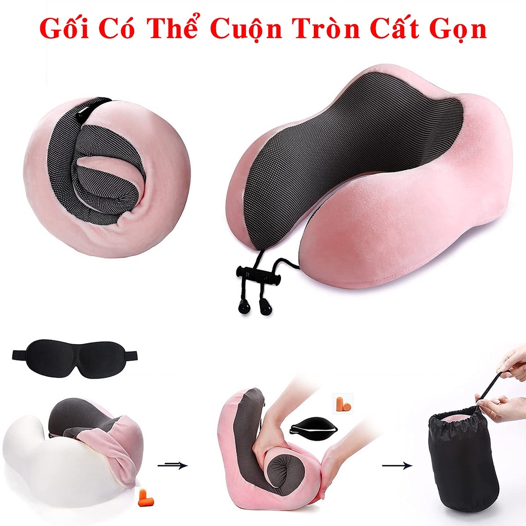 Giới thiệu [Màu Hồng] Gối Ngủ Văn Phòng Du Lịch Chữ U Tặng Kèm Bịt Mắt, Bịt Tai Chống Mỏi Chất Liệu Memory Foam - Hãng dododios