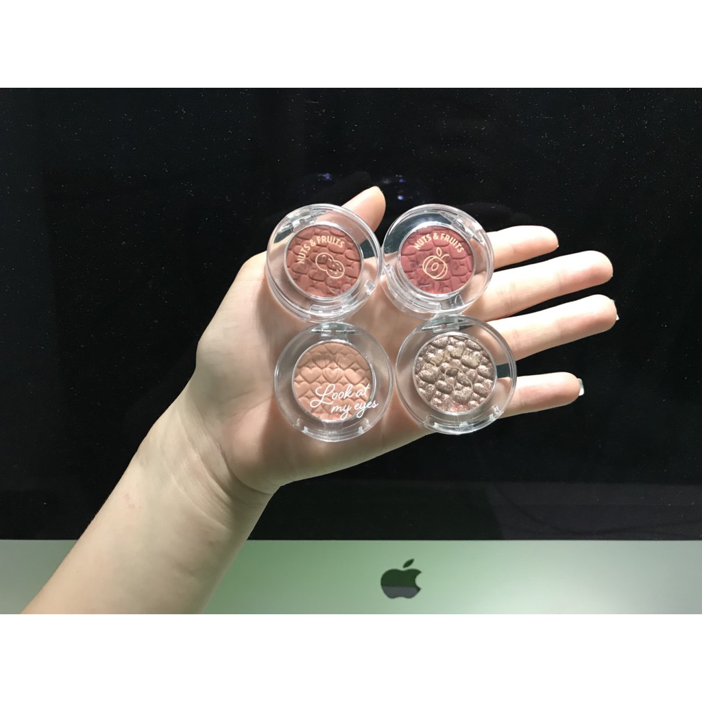 - Bộ sưu tập phấn mắt #Etude_House_Look_At_My_Eyes_Nuts&Fruits sở hữu những tông màu #trẻ_trung, #dễ_sử_dụng mà không quá kén màu da. Đặc biệt bạn có thể dễ dàng kết hợp các màu với nhau để tạo nên những màu mắt thật đẹp và #độc_đáo. - Phấn có kết cấu #siêu_mịn, có thể dễ dàng tán đều trên da bằng cọ hoặc đầu ngón tay. Màu phấn lên cực #chuẩn mà lại cực mịn. Cho dù bạn có trang điểm ban ngày hay ban đêm thì hãy cứ yên tâm vẫn luôn đẹp, luôn nỗi bật nhé. - Đặc biệt, thành phần của phấn còn được bổ sung thành phần dưỡng ẩm nên không hề bị khô da trong quá trình sử dụng. - Sản phẩm được chiết xuất từ những thành phần lành tính nên hoàn toàn không gây kích ứng cho da, đặc biệt là vùng da nhạy cảm quanh mắt. - Mỗi màu mắt được bảo quản trong một hộp riêng, nhỏ gọn, có nắp đậy chắc chắn nên các nàng tha hồ mang theo làm điệu mọi lúc mọi nơi. - Hãy cùng nhau xem bảng màu : + #OR220 – Slightly Dried Honey Orange: Một quả bóng với một viên ngọc trai màu vàng mật ong tươi sáng. Các hạt ngọc trai có kích thước đủ nhỏ để làm long lanh đôi mắt. Đó là một màu vàng cam tươi sáng. Ngay cả khi được sử dụng như một blusher thì màu sắc vẫn rất đẹp và ấm áp. + #RD307 – Mix Nuts In Cranberries: Một màu #tông_đỏ nổi bật với độ bão hòa màu thấp, cảm giác như một quả bóng nâu đỏ cá tính và quyến rũ. Hoàn hảo để đạt điểm 10 về độ lên màu. + #BR415 – Almond Baked Amond: Màu nâu Saira dịu nhẹ bắt tông #đỏ_cam cực nhẹ nhàng mang đậm xu hương mùa thu, nó có thể sử dụng nhưng một lớp màu nền bên dưới. + #BR416 – Wicked Cashew Nuts: Đó là một màu #nâu_nhẹ kết hợp cùng tông beige thực sự phù hợp với màu cơ b