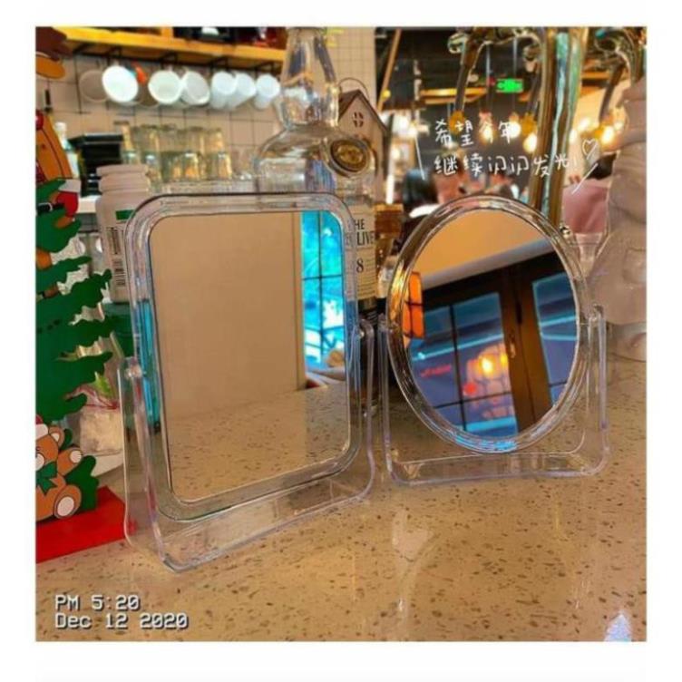 Sale mùa hè *Tên sản phẩm: Gương trang điểm để bàn trong suốt 2 mặt gương xoay 360 độ