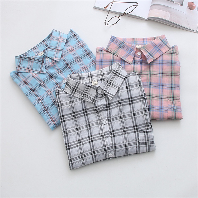 Giới thiệu (MẪU MỚI) Áo sơ mi hàn quốc kẻ caro cổ bẻ phối tay bồng ulzzang/ Áo khoác ngoài dáng rộng thời trang nữ