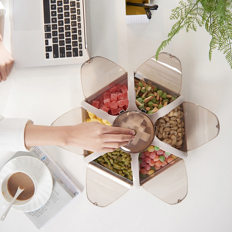 Nhà Cửa & Đời Sống > Đồ dùng nhà bếp và hộp đựng thực phẩm > Dụng cụ làm bánh. > [ Mẫu mới ] Khay mứt tết 6 cánh hoa tự bung - Khay đựng bánh kẹo tết sang trọng, lịch sự - Mẫu mã đẹp, giá rẻ GD014