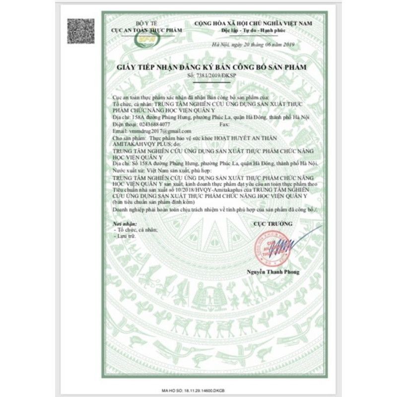 Giới thiệu (MẪU MỚI)HOẠT HUYẾT AN THẦN AMITAKA PLUS HỌC VIỆN QUÂN Y