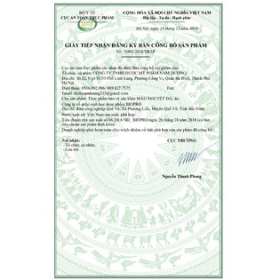 Số đăng ký sản phẩm Số: 10493/2018/DKSP Mã vạch sản phẩm Số: 8936090841532 Số xác nhận quảng cáo Số: 00342/2019/ATTP-XNQC