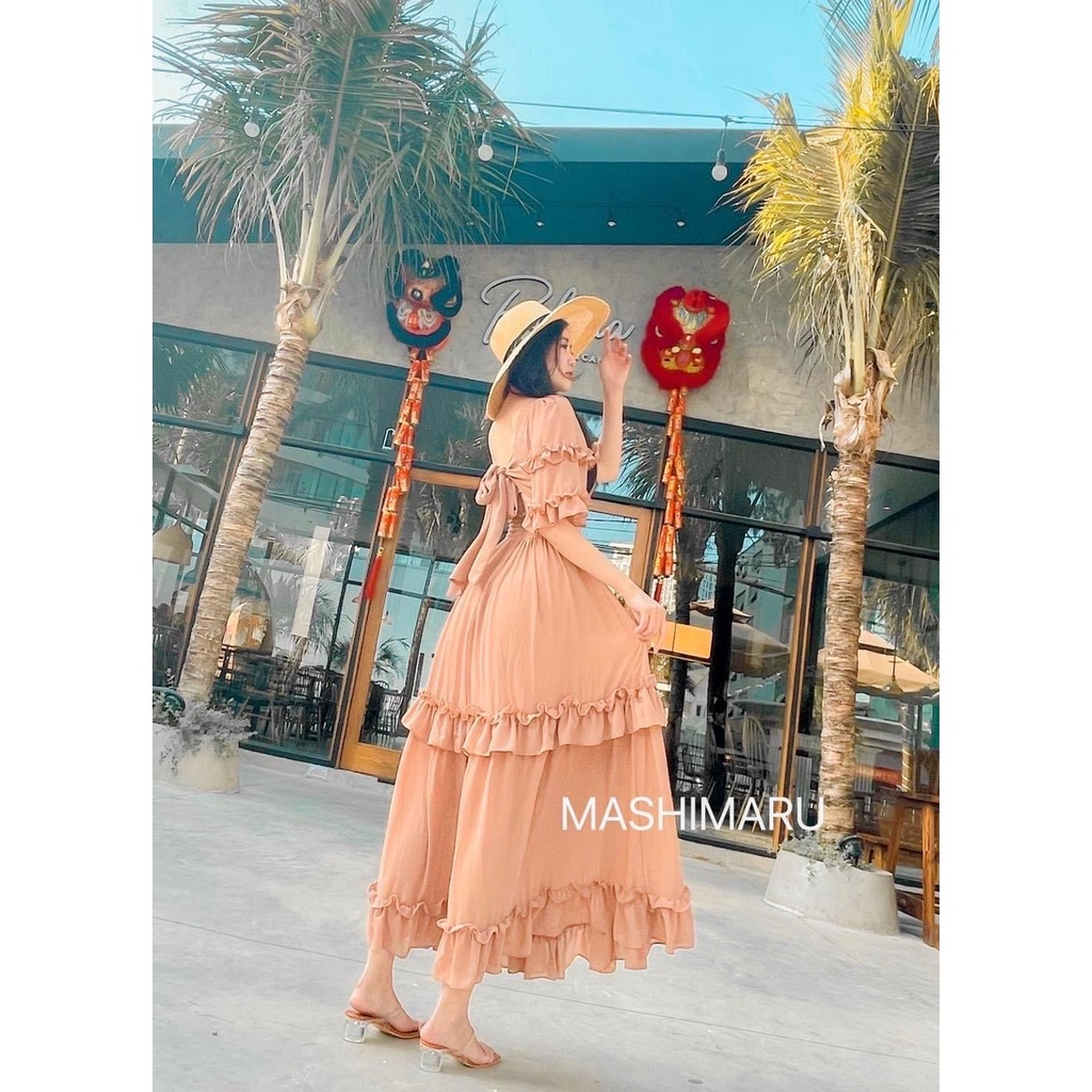 [Maxi] đầm maxi đi biển đỏ nude bèo tầng - Maxi ngọc lan