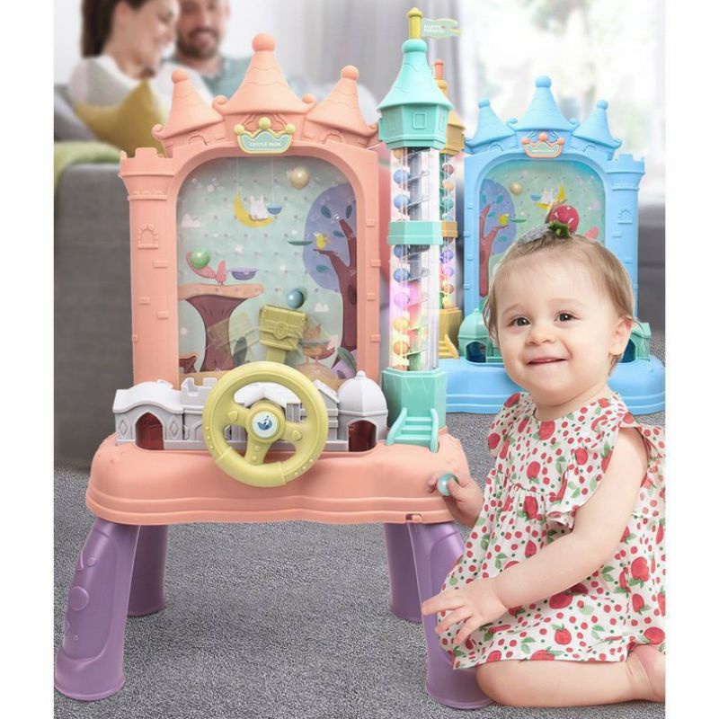 Đồ chơi giải trí pinball, đồ chơi bắt hạt đậu hình lâu đài kèm vô lăng ô tô có đèn có nhạc vui nhộn cho bé