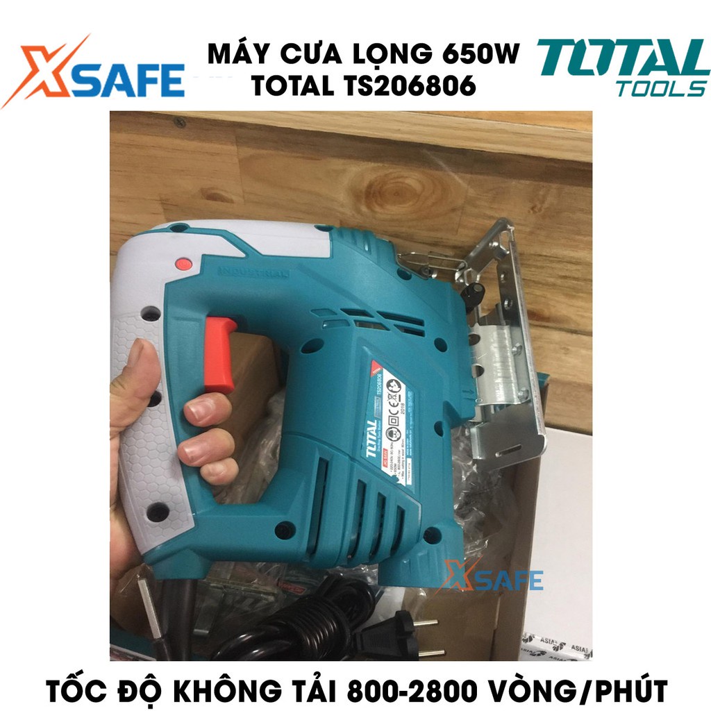 MÁY CƯA LỌNG 650W TOTAL TS206806 Được phân phối chính hãng bởi BẢO HỘ XSAFE ----------------------------- THÔNG SỐ KỸ THUẬT MÁY CƯA LỌNG 650W TOTAL TS206806 - Xuất xứ: Trung Quốc - Thương hiêu: Total - Điên thế: 220-240V - Tốc độ không tải: 800-2800 vòng/phút - Công suất 650W - Khả năng cắt: (gỗ) 65mm – (sắt/thép) 8mm - 4 chức năng lắc nhịp - Kèm 1 lưỡi cưa lọng và 1 bộ than - Đóng gói trong hộp màu - Bảo hành 6 tháng