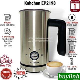 Máy đánh sữa tạo bọt Kahchan EP2188 có dung tích 600ml với chức năng pha nóng, nguội, là sản phẩm đánh sữa đa năng cao cấp, giúp bạn có thể pha chế được nhiều loại đồ uống khác nhau,... phù hợp với các quán cà phê, gia đình. Huy Linh phân phối và bảo hành chính hãng tại Kahchan Việt Nam [Năm 2022 Kahchan ra mắt sản phẩm mới là Model EP2198 với cải tiến có 4 nút chức năng bao gồm: tạo bọt dày - bọt mịn - bọt ít - bọt lạnh thuận tiện sử dụng hơn] Máy đánh sữa Kahchan EP2188 là 1 sản phẩm đa năng: - Máy đánh sữa tạo bọt Kahchan EP2188 có thể pha chế được rất nhiều loại đồ uống nóng – lạnh khác nhau như: cà phê sữa nóng, cà phê sữa đá, cacao sữa nóng, cacao sữa đã, cà phê sữa trứng, trà sữa thái, trà sữa, trà sữa matcha,... Pha cappuccino, latte,... tạo lớp bọt sữa tinh tế. Đây là 1 sản phẩm không thể thiếu đối với 1 barista mới vào nghề. - Thân máy làm hoàn toàn bằng inox sang trọng, và rất dễ vệ sinh, sản phẩm đc thiết kế tinh xảo và đảm bảo độ bền tốt nhất. Sản phẩm tạo cho không gian bếp hay quán cà phê của bạn trở nên sang trọng hơn. - Máy đánh sữa tạo bọt, pha ca cao Kahchan có dung tích lên tới 600ml, tăng dung lượng lên gấp 1.5 so với dòng sản phẩm cũ là Kahchan EP2178, giúp cho bạn có thể tiết kiệm tối đa thời gian đánh sữa, không để khách hàng chờ đợi sản phẩm của mình lâu. - Máy pha cà phê Kahchan EP2188 dùng pha nhiều loại trà sữa và thức uống nóng/ lạnh mà bạn thường nghĩ chỉ có thể thưởng thức ở các quán cà phê lớn với chi phí đắt đỏ nhưng khi bạn sở hữu chiếc Kahchan EP2188 có thể làm nhiều loại thức uống như: cà phê sữa đá, cà phê sữa nóng, cacao đá, trà sữa thái, trà đào, trà sữa lipton, cà phê capuchino, late, sinh tố sữa....
