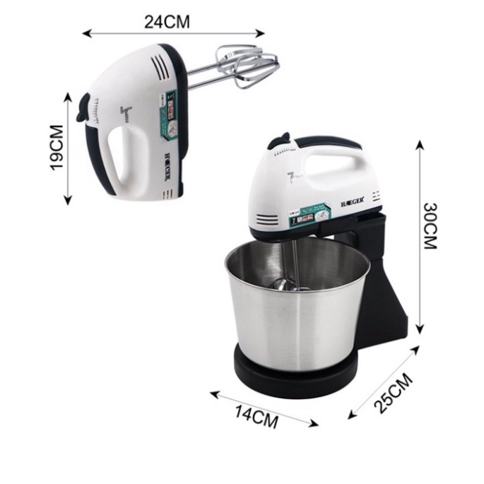 Máy đánh trứng để bàn 2 đầu có tô đựng có 7 tốc độ và công suất 250W với ưu điểm nhẹ nhàng, kiểu dáng đẹp, giúp khâu làm bánh nhanh chóng tức thì, các sản phẩm máy đánh bột, đánh trứng cầm tay hiện đại đã giúp các bà nội trợ bớt lo lắng nhiều về khâu đánh bột, trứng sao cho đều và mịn và không bị mỏi tay. Tính năng sản phẩm: - Máy trang bị đến 7 tốc độ (máy đánh trứng thông thường chỉ có 5 tốc độ) Máy có công suất 250W, được trang bị 7 tốc độ khác nhau, giúp bạn dễ dàng điều chỉnh mức độ thích hợp trong quá trình sử dụng. Trong đó, chức năng gia tốc nhanh và an toàn, giúp tốc độ tăng tối đa bất cứ lúc nào. - Chất liệu cao cấp Thân máy được sản xuất từ nhựa ABS, an toàn cho sức khỏe, độ bền cao. Que trộn trứng và móc nhào đều được làm từ inox, không gỉ, có độ cứng cao, đảm bảo độ bền và không gây độc hại cho sức khỏe. Chất liệu Inox, không rỉ sét đảm bảo chất lượng, vệ sinh cho hỗn hợp trứng, kem, sinh tố. Bộ dụng cụ hữu hiệu dùng cho các chức năng đánh trứng, nhào bột và các loại thực phẩm khác. - Vận hành êm ái Máy hoạt động ổn định và êm ái, không bị rung khi chạy với tốc độ mạnh. Ngoài ra, sản phẩm còn có chức năng gia tốc nhanh an toàn, giúp tăng tốc độ tối đa bất cứ lúc nào, thuận tiện trong quá trình sử dụng. - Thiết kế hiện đại Sản phẩm có thiết kế gọn nhẹ, tay cầm chắc chắn. Thân máy bằng màu trắng, thiết kế sang trọng, hiện đại. THÔNG SỐ KỸ THUẬT: + Thương hiệu: HAEGER HG-6637 + Công suất: 250W + Tốc độ: 7 tốc độ + Điện áp: 220V - 50Hz + Chất liệu: Nhựa abs, inox Bộ sản phẩm gồm: Thanh đánh trứng (4 thanh) + Khung máy + Xô đựng + Máy đánh trứng để bàn có xô đựng dung tích 1,8L ⛵