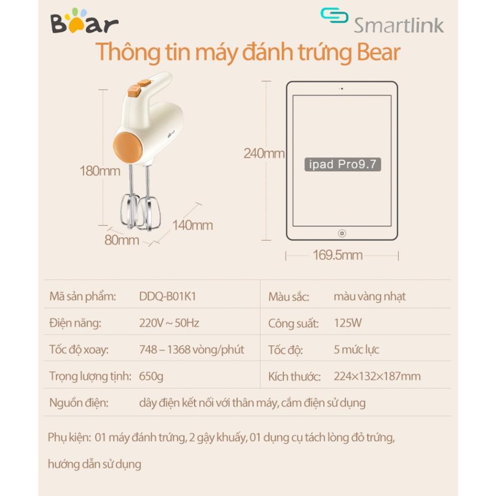 Nhà Cửa & Đời Sống > Đồ dùng nhà bếp và hộp đựng thực phẩm > Dụng cụ làm bánh. > Máy đánh trứng cầm tay mini Bear B01K1, máy đánh kem, trộn bột Bear Cao Cấp, 5 mức độ, công suất mạnh, bảo hành 12 tháng