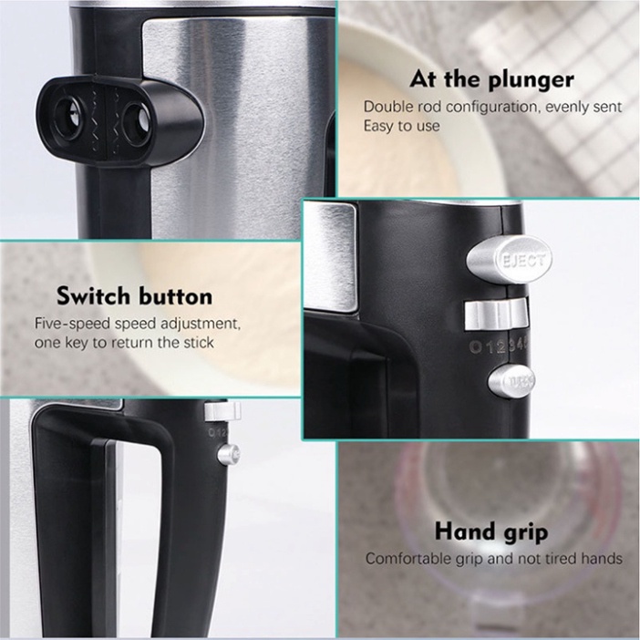 ⛵ THÔNG SỐ KỸ THUẬT: + Thương hiệu: SOKANY SK-6623 + Cống suất: 800W + Chất liệu: Nhựa cao cấp, thép không gỉ + Thiết kế nhỏ gọn, dễ sử dụng và vệ sinh + Đầu đánh trứng và móc trộn inox + Điều chỉnh 5 tốc độ phù hợp với từng loại thực phẩm và nhu cầu sử dụng ĐẶC ĐIỂM CHI TIẾT : 1. Thiết kế gọn nhẹ Máy Đánh Trứng SOKANY SK-6623 có thiết kế gọn nhẹ với tay cầm chắc chắn để bạn sử dụng dễ dàng mà không bị mỏi tay khi sử dụng lâu. Các bộ phận dễ dàng tháo rời và vệ sinh được trong máy rửa chén. 2. Chức năng với 5 tốc độ đánh thông minh Máy có 5 tốc độ đánh giúp bạn dễ dàng lựa chọn tốc độ sao cho phù hợp với từng loại nguyên liệu khác nhau. Kết hợp với các nút điều chỉnh được bố trí tiện lợi trên thân máy giúp bạn thao tác dễ dàng, nhanh chóng. 3. Công suất mạnh mẽ, chất liệu an toàn Đặc biệt, máy đánh trứng cầm tay được hoạt động với công suất lớn 800W tạo lực đánh khỏe nhưng vẫn vận hành êm ái, không gây nhiều tiếng ồn giúp công việc nấu nướng của bạn thật tiện lợi và nhanh chóng. 4. Chất liệu cao cấp Các thanh trộn của máy đánh trứng Sokany được làm bằng thép không gỉ cao cấp rất an toàn cho sức khỏe của bạn và gia đình, chất liệu thép cũng dễ dàng vệ sinh, chùi rửa. 5. Vận hành êm ái Máy hoạt động ổn định và êm ái, không bị rung khi chạy với tốc độ mạnh, hỗ trợ rất tốt cho chức năng đánh trứng, nhào bột và các trộn loại thực phẩm khác. 6. Nút nhấn tháo que trộn hoặc móc nhào được thiết kế với kích thước lớn, dễ sử dụng. ⛵