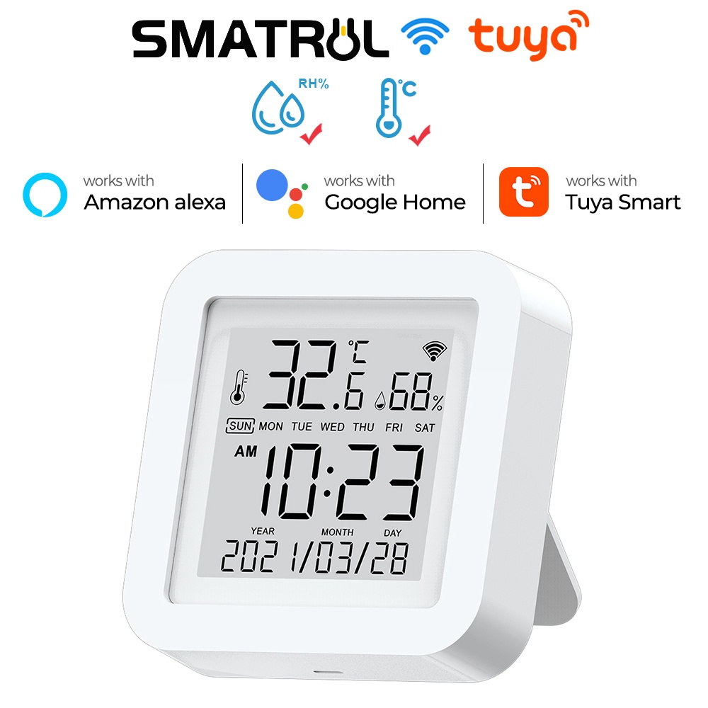 Nhà Cửa & Đời Sống > Trang trí nhà cửa > Trang trí tường > Máy đo độ ẩm SMATRUL điện tử Tuya Wifi thông minh hỗ trợ Alexa Google Home cảm biến nhiệt độ và độ ẩm màn hình LCD