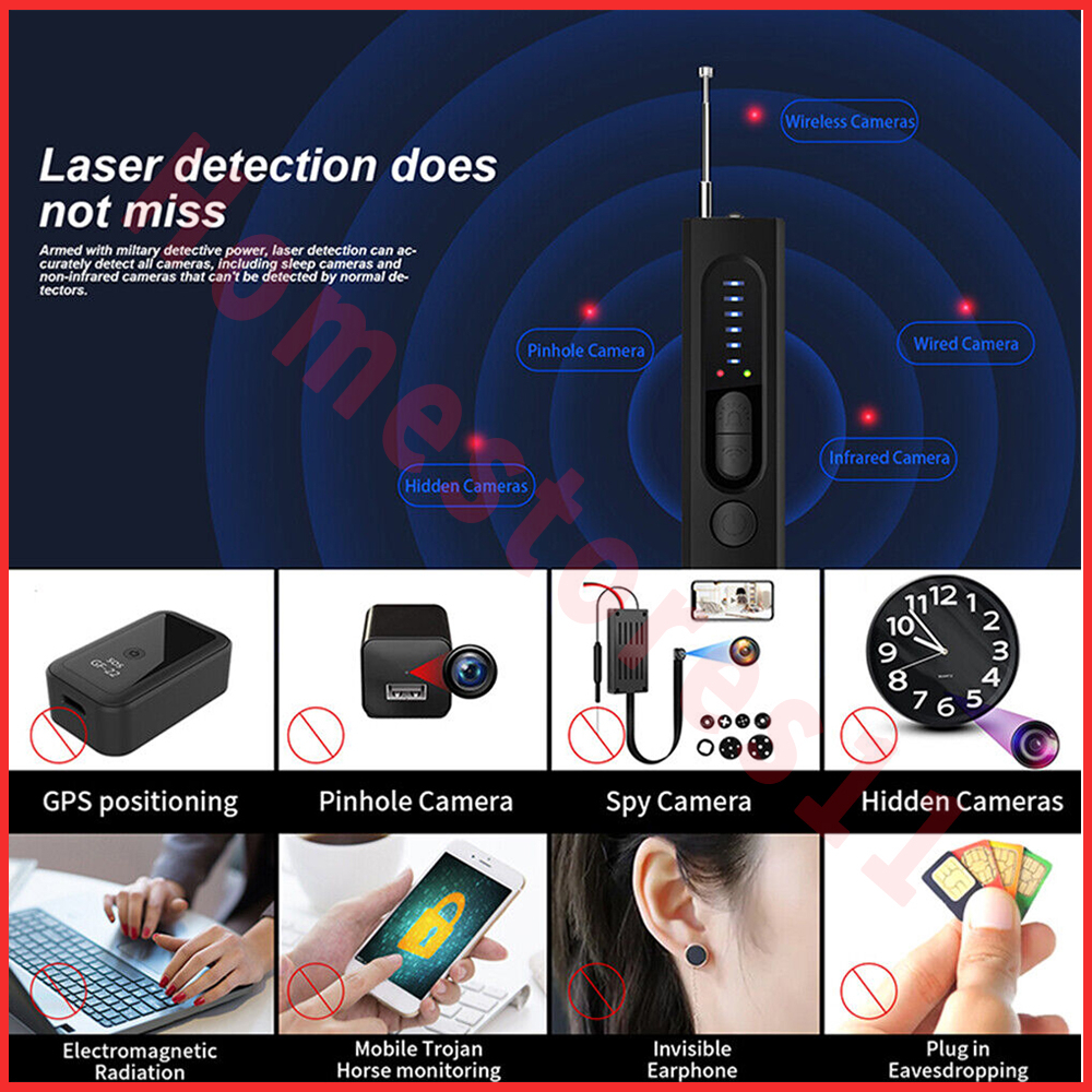 Phát hiện tín hiệu RF Bạn có thể dễ dàng tìm thấy thiết bị âm thanh / video không dây, bộ phát VHF / UHF, GSM / 3G / 4G / 5G / 5G bug, GSM / 3G / 4G / 5G Máy theo dõi GPS. Máy ảnh ẩn Chuyển sang c