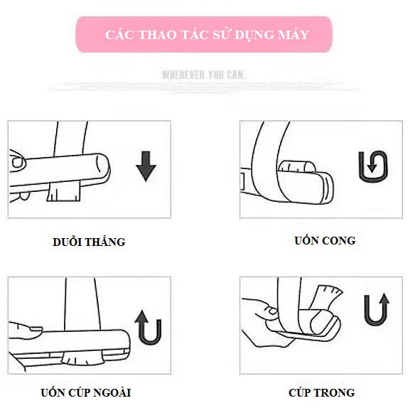 3.Hướng dẫn sữ dụng Cá mẹo nhỏ để bạn có thể tạo 1 mái tóc xoăn quyến rũ tại nhà + Nếu muốn tóc mình xoăn nhanh, với lọn xoăn nhỏ, uốn theo độ xoăn đó bạn nên dùng tay xoắn lọn tóc lại rồi mới dùng máy duỗi uốn tóc mini. + Buộc tóc kiểu đuôi ngựa rồi quấn phần tóc còn lại, bạn sẽ có mái tóc xoăn đều và đẹp. + Bạn nên uốn theo chiều dọc hoặc chiều ngang sẽ làm đẹp hơn mái tóc của mình.