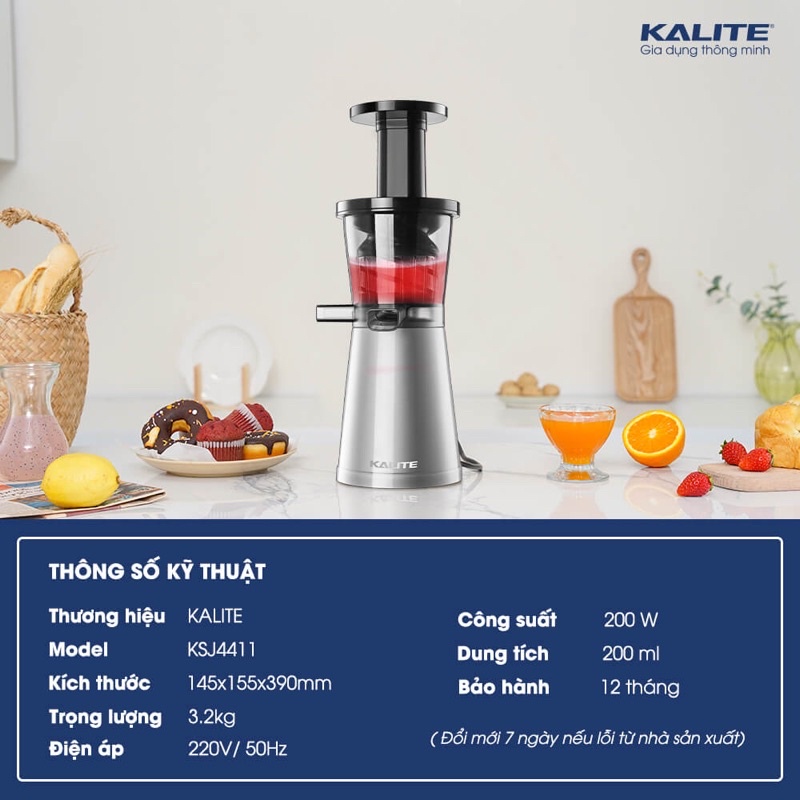 Thiết Bị Điện Gia Dụng > Máy xay, ép, máy đánh trứng trộn bột, máy xay thực phẩm > Máy xay-ép, đánh trứng trộn bột, máy xay thịt, xay thực phẩm > Máy ép chậm Kalite KSJ4411 máy ép nhỏ gọn công suất 200W ép rau củ quả kiệt bã, làm kem trái cây - bảo hành 12 tháng