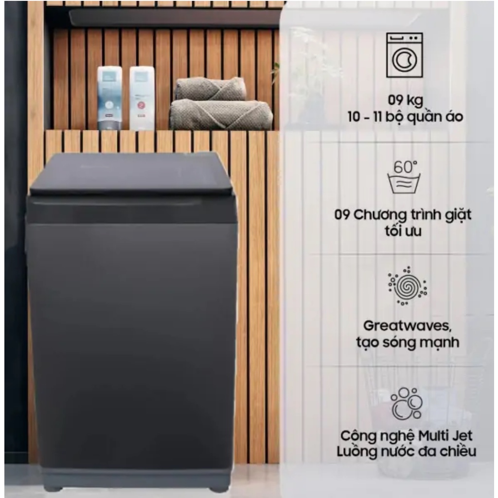 Thông Tin Chung Loại máy giặt Lồng đứng Khối lượng giặt 9 kg Động Cơ Curoa Tính Năng Sản Phẩm Tính năng khác Công nghệ Multi Jet – Luồng nước đa chiều, Tự vệ sinh lồng giặt Lồng Giặt Thép không gỉ Khử mùi diệt khuẩn Có Chương trình giặt 9 chương trình: Tiêu chuẩn, giặt thơm, giặt mạnh, giặt nhanh, tùy chọn, giặt nhẹ, giặt chăn mền, giặt ngâm, vắt cực khô Bảng điều khiển Bảng điều khiển bên phải phím bấm Ngôn Ngữ Tiếng Việt Màn hình hiển thị thời gian Có Chọn mức nước Có Chọn thời gian vắt Có Nắp máy Kính chịu lực Hẹn Giờ Có Thông Số Kỹ Thuật Tốc độ vắt 700 vòng / phút Màu sắc Bạc Trọng lượng 34.2 kg Kích thước (R*S*C) 560 x 630 x986 mm Xuất Xứ & Bảo Hành Hãng sản xuất Aqua ( Thương hiệu: Nhật Bản) Sản xuất tại Việt Nam