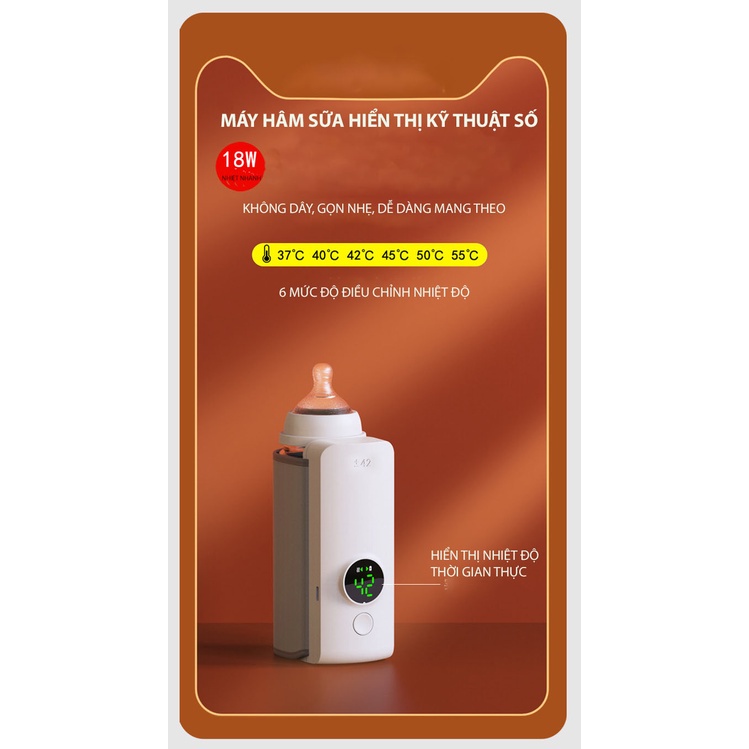 ***Ưu điểm sản phẩm - Máy hâm sữa làm ấm và giữ nhiệt tự nhiên, giữ gìn nguồn dưỡng chất và độ thơm ngon của sữa - Sử dụng an toàn, hâm sữa dễ dàng, nhanh chóng, không cần hâm cách thủy hay lò vi sóng - Máy có màn hinh kỹ thuật số với 6 mức nhiệt điều chỉnh khác nhau - Máy kiểm soát nhiệt độ chính xác, giám sát thời gian thực, xóa tan nỗi lo của mẹ về sữa quá nóng hay sữa quá nguội hay sữa để lâu - Lớp bọc lông cừu mềm mịn, có thể giữ ấm và cách nhiệt ở ngoài trời - Dung lượng pin 6000mAh, có thể dùng liên tục đến 3h - Tiết kiệm thời gian cho mẹ, nhỏ gọn , dễ mang theo - Ngoài hâm sữa máy còn có thể hâm các loại chai lọ , thức uống khác