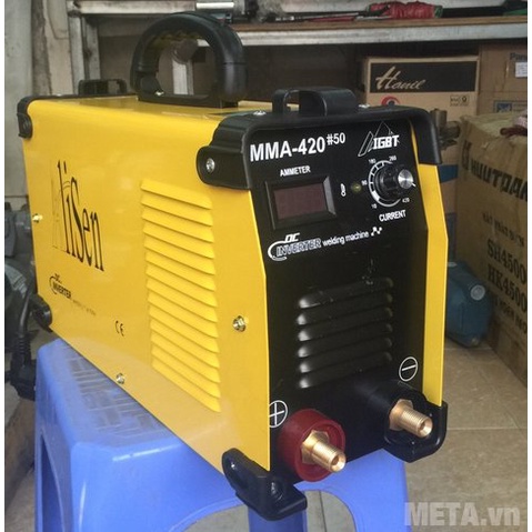 ❌Thông Số Kĩ Thuật Máy Hàn Que alisen MMA420#50 Điện thế vào: 1 pha 220V +- 15% Tần số: 50/60 Hz Công suất đầu ra: 7 KVA Cường độ ra: 20 -420 A Điện áp ra: 50 – 70 V Chu ký công tác:100% Sử dụng que hàn: 1.6 – 3.2 mm *phụ kiện đi kèm : kẹp mát ‚ kìm hàn ‚ mặt lạ hàn ‚ dây hàn 16mm = 5 mét Tính năng nổi bật : – hàn liên tục que 3‚2mm – Kích thước nhỏ‚ khối lượng nhẹ‚ kết cấu chắc chắn – Tiết kiệm năng lượng – Hàn êm và ổn định – Mồi hồ quang dễ – Tự động bù điện áp khi làm việc trong môi trường có điện áp không ổn định